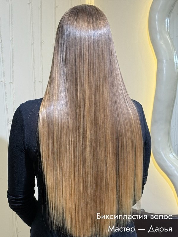 Но это еще не все! Также я специализируюсь на горячих процедурах, чтобы волосы стали гладкими и сияющими. Кератин, ботокс, биксипластия - какие волшебные слова! Я подберу идеальный состав, учитывая индивидуальные потребности, структуру и тип волос. Моя работа - это настоящее искусство, которое делает жизнь красивее".